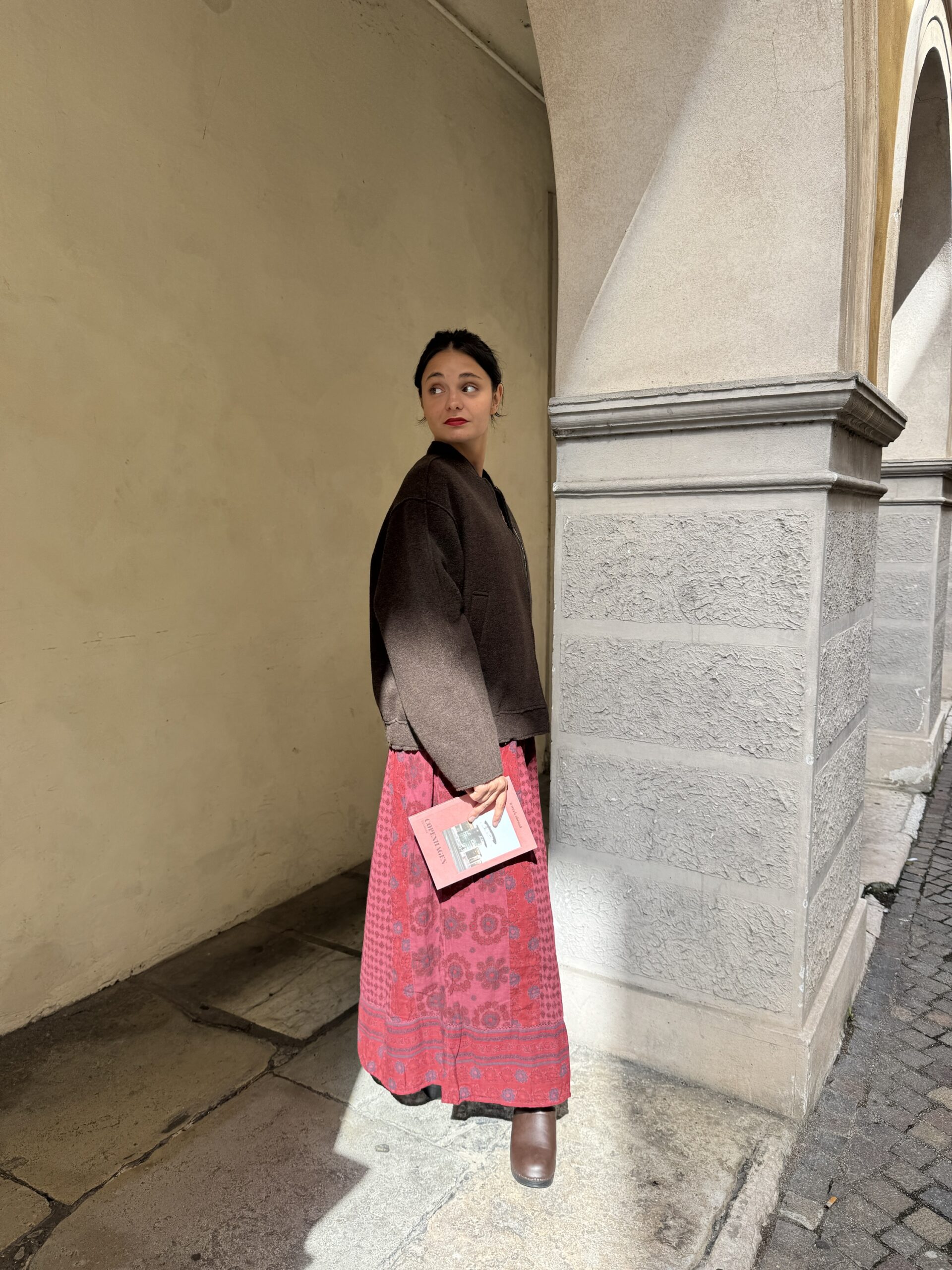 – Andrea Rachele è alta cm 170 e di solito indossa una tg 40/S . Nella foto indossa una Tg S.