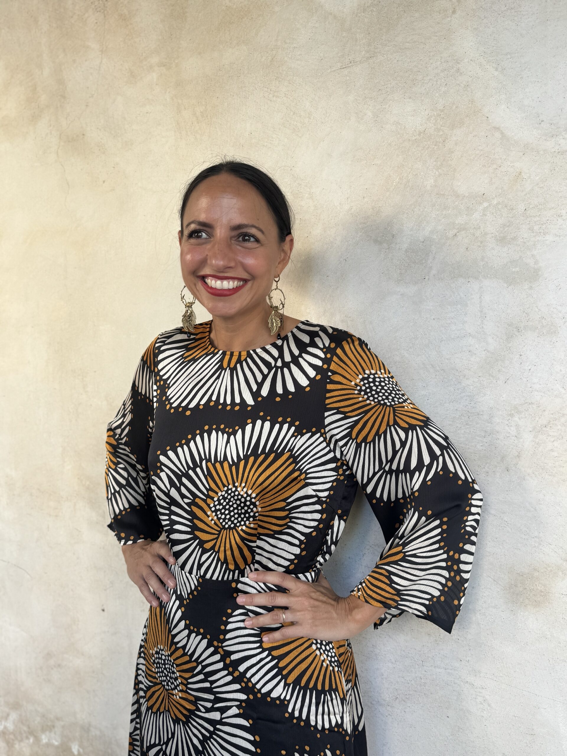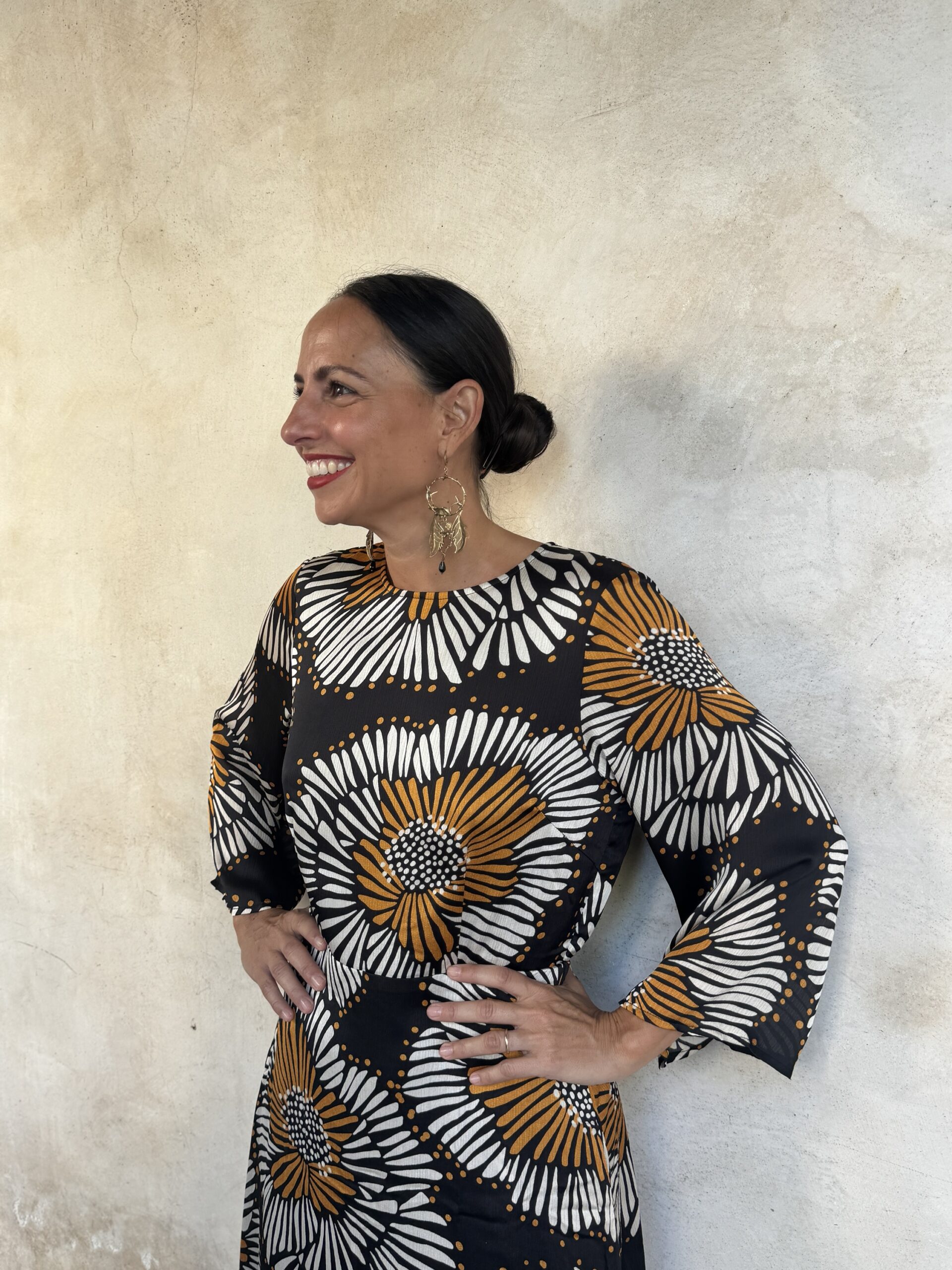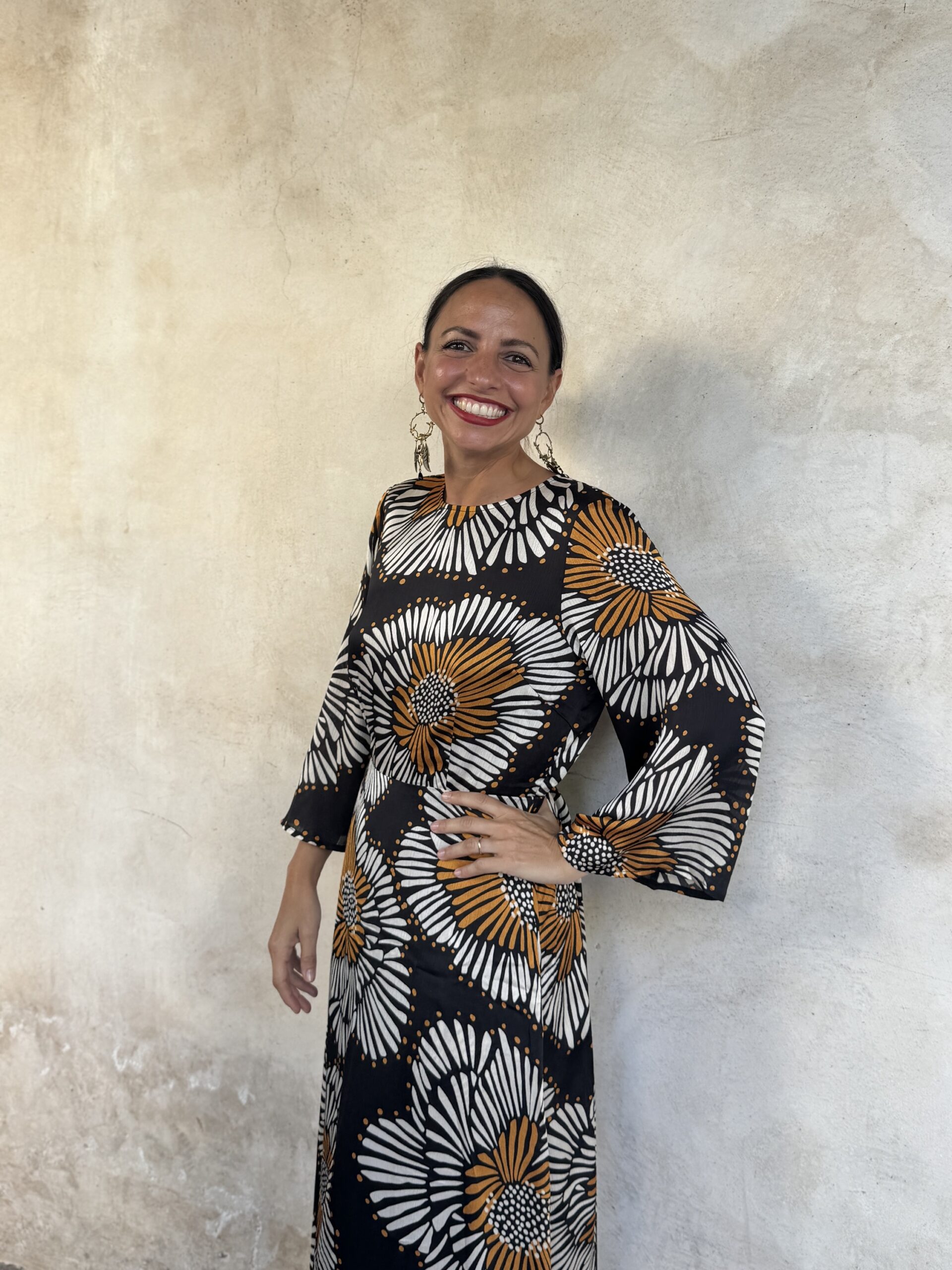 – Maddalena é alta 164 e di solito indossa una tg 40/S. Nella foto indossa una Tg S .