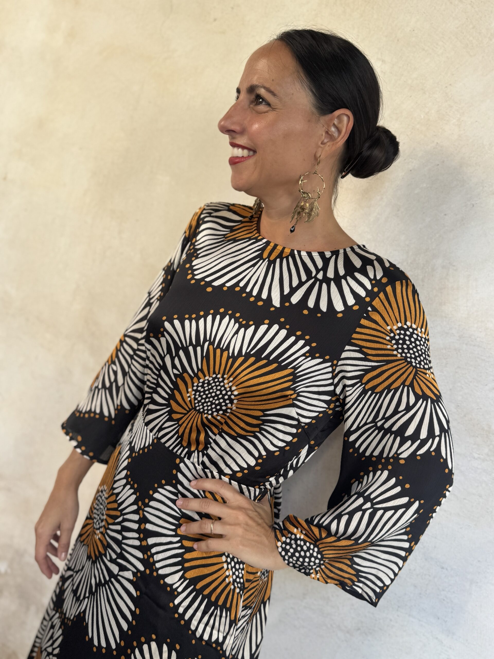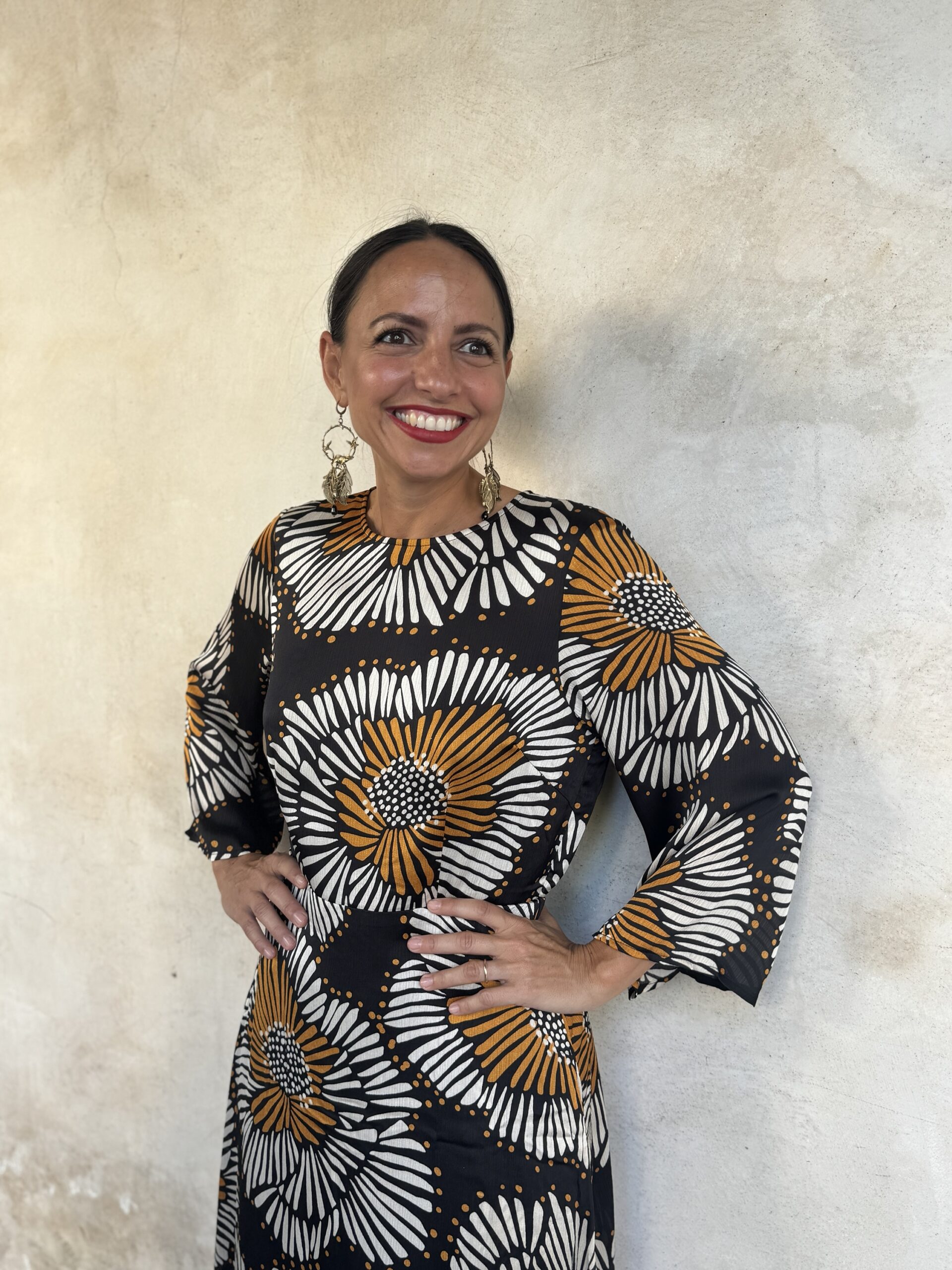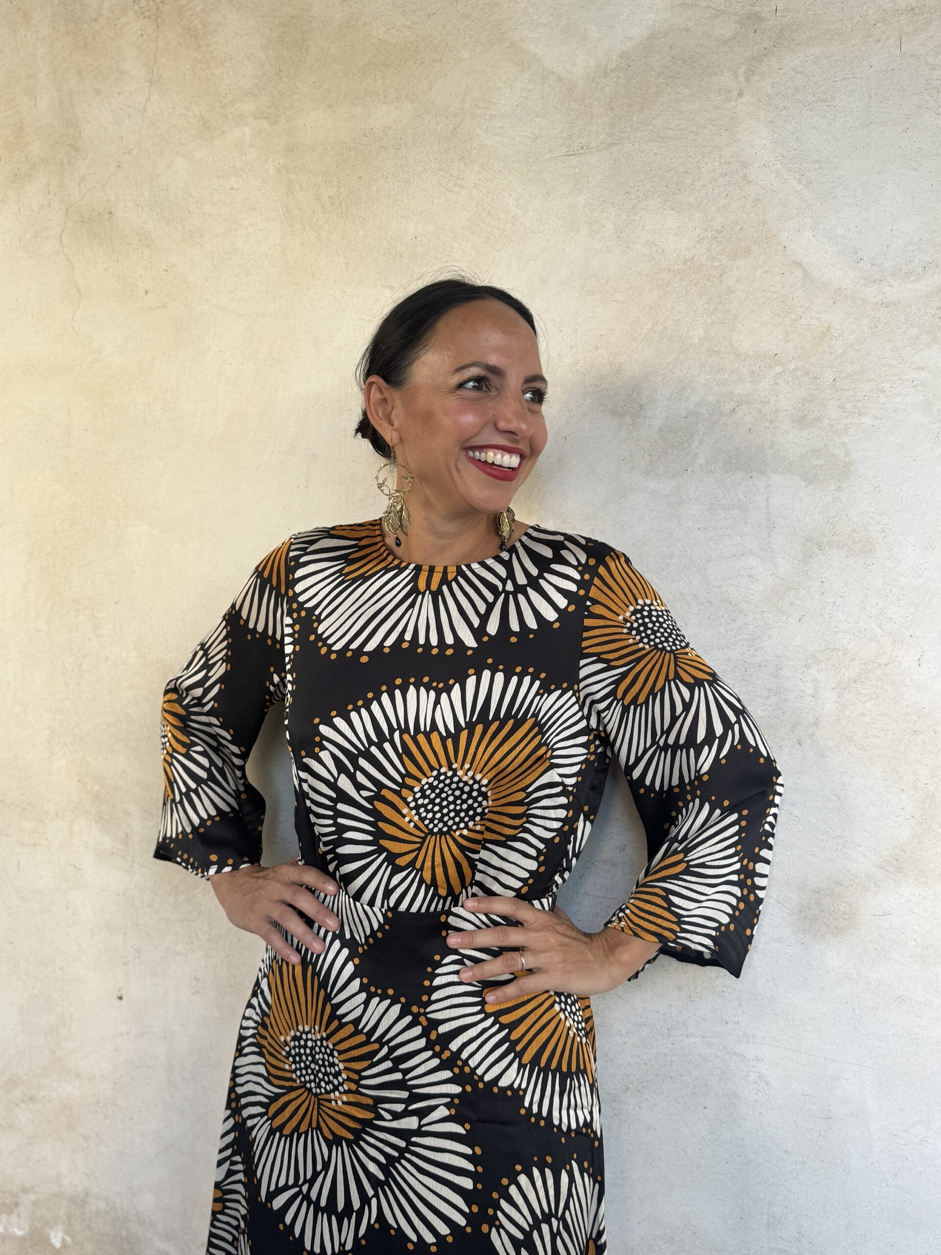 – Maddalena é alta 164 e di solito indossa una tg 40/S. Nella foto indossa una Tg S .
