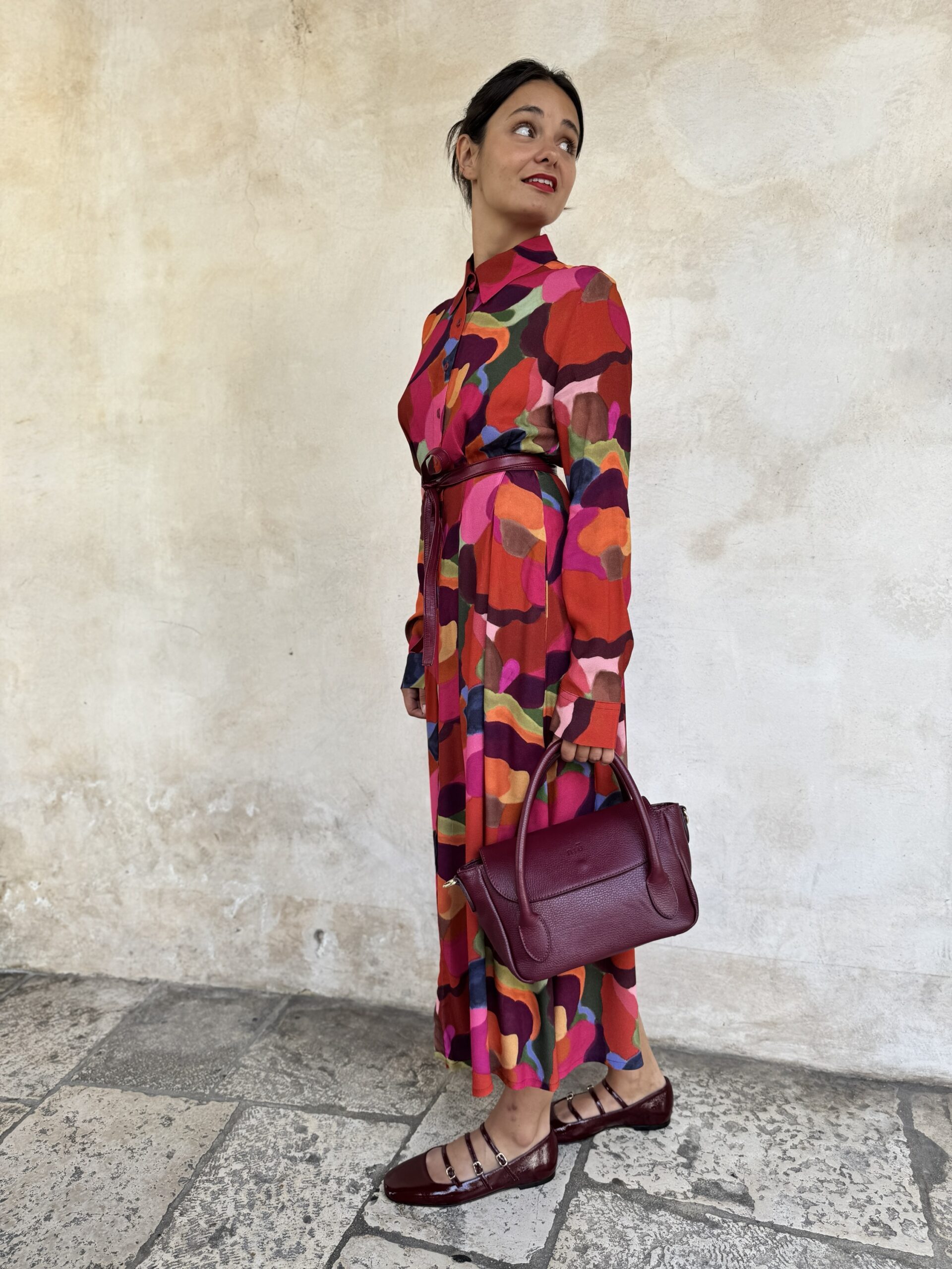 – Andrea Rachele è alta cm 170 e di solito indossa una tg S/40. Nella foto indossa una tg 36 che corrisponde ad una 40 italiana .