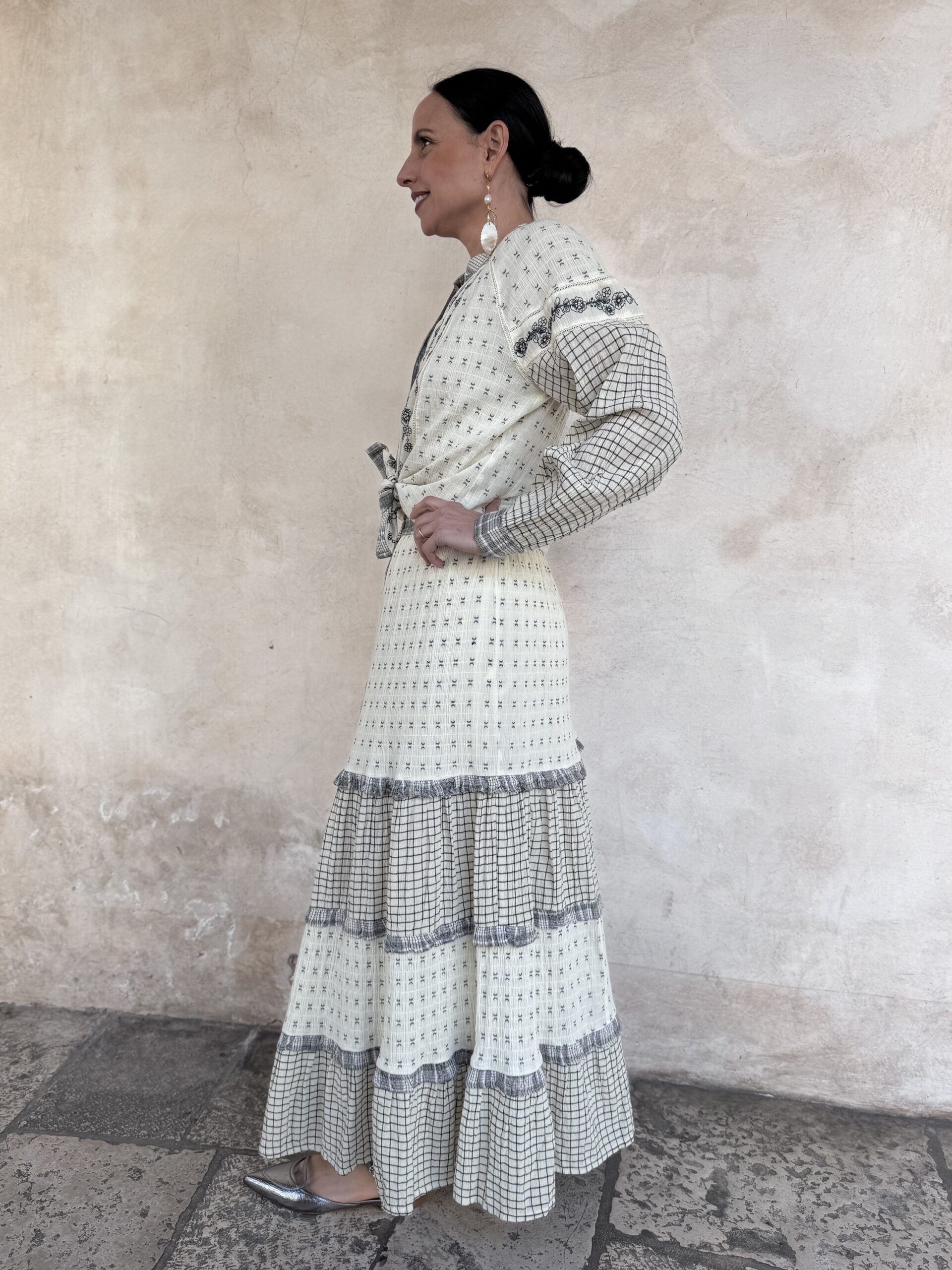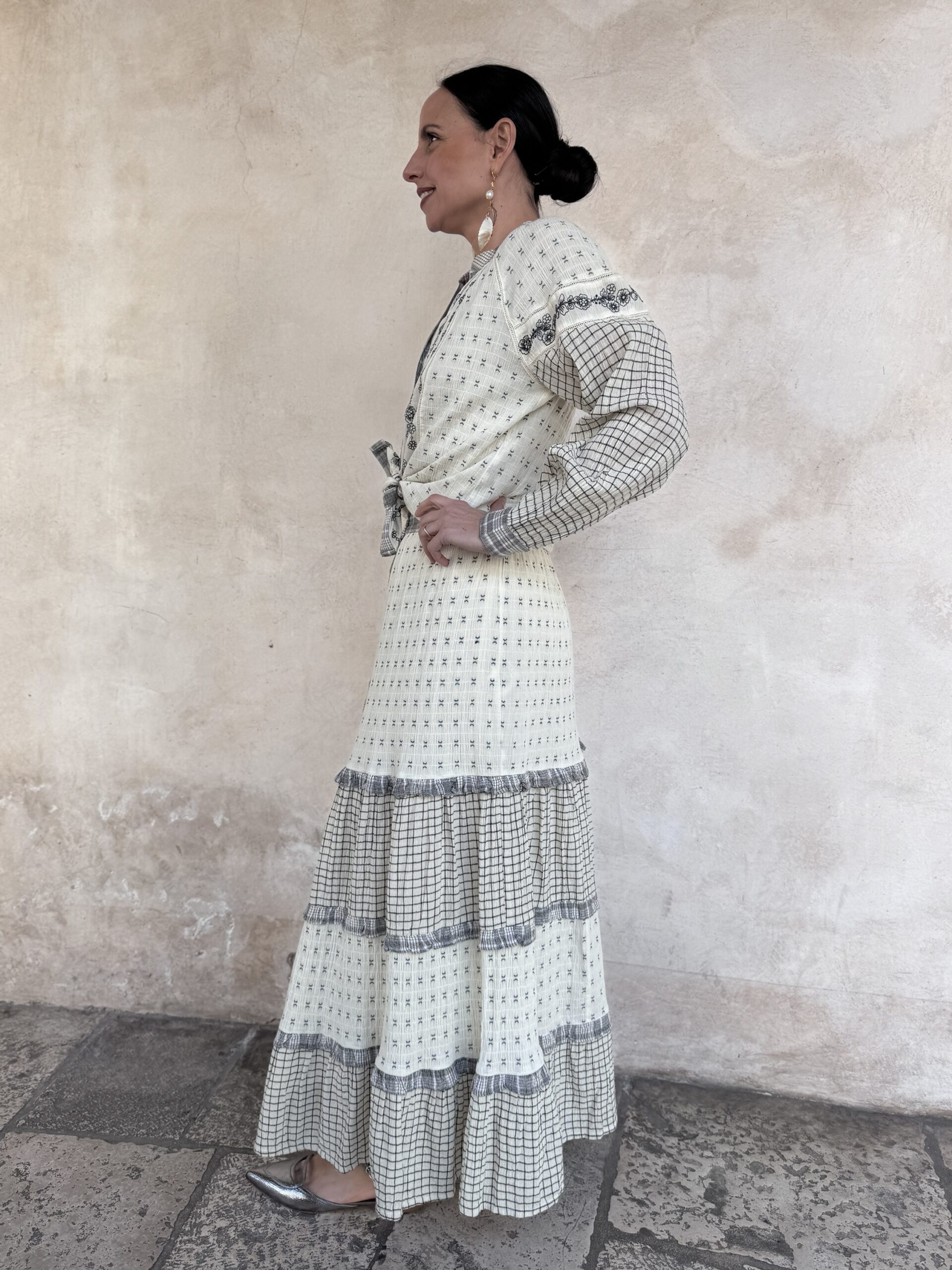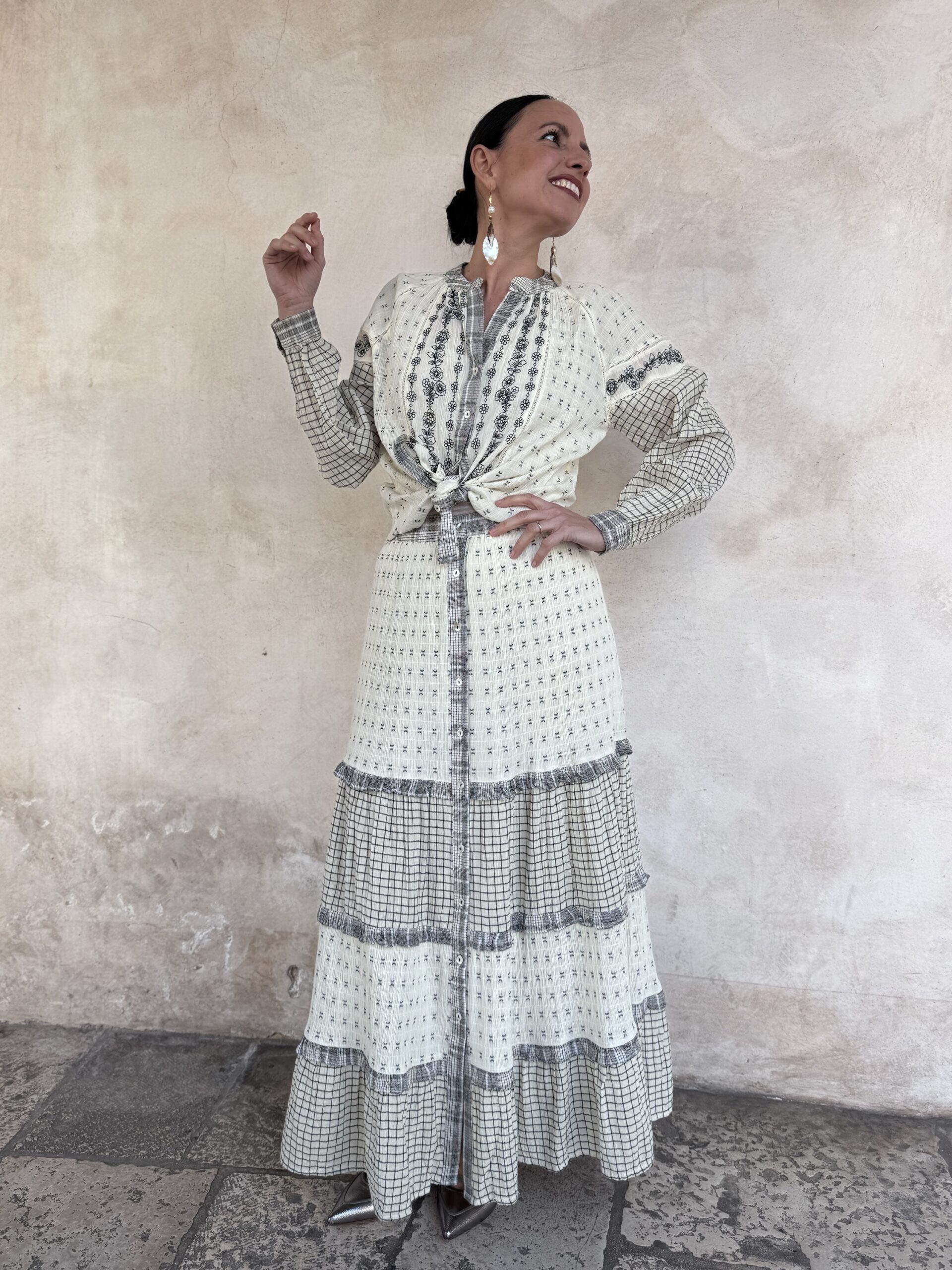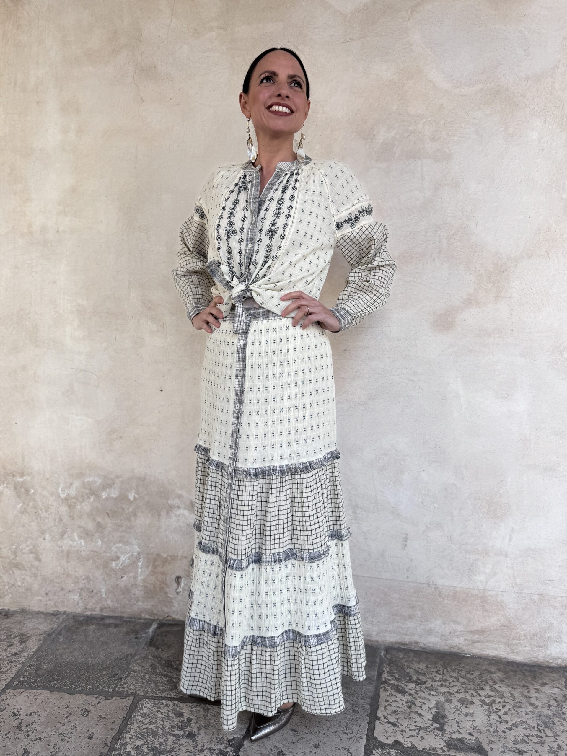 – Maddalena è alta 165 cm e di solito indossa una tg 40/S. Nella foto indossa proprio una S.