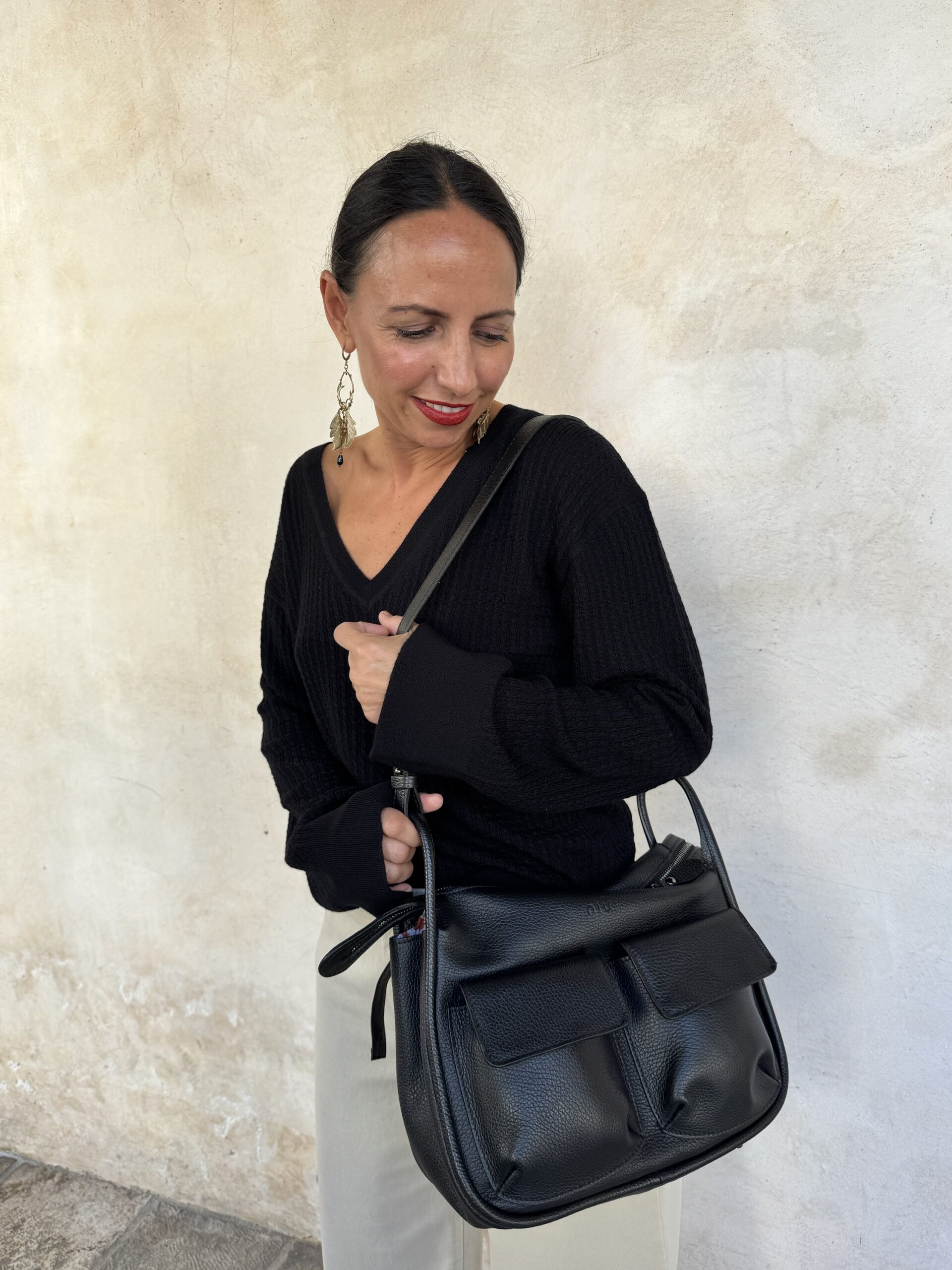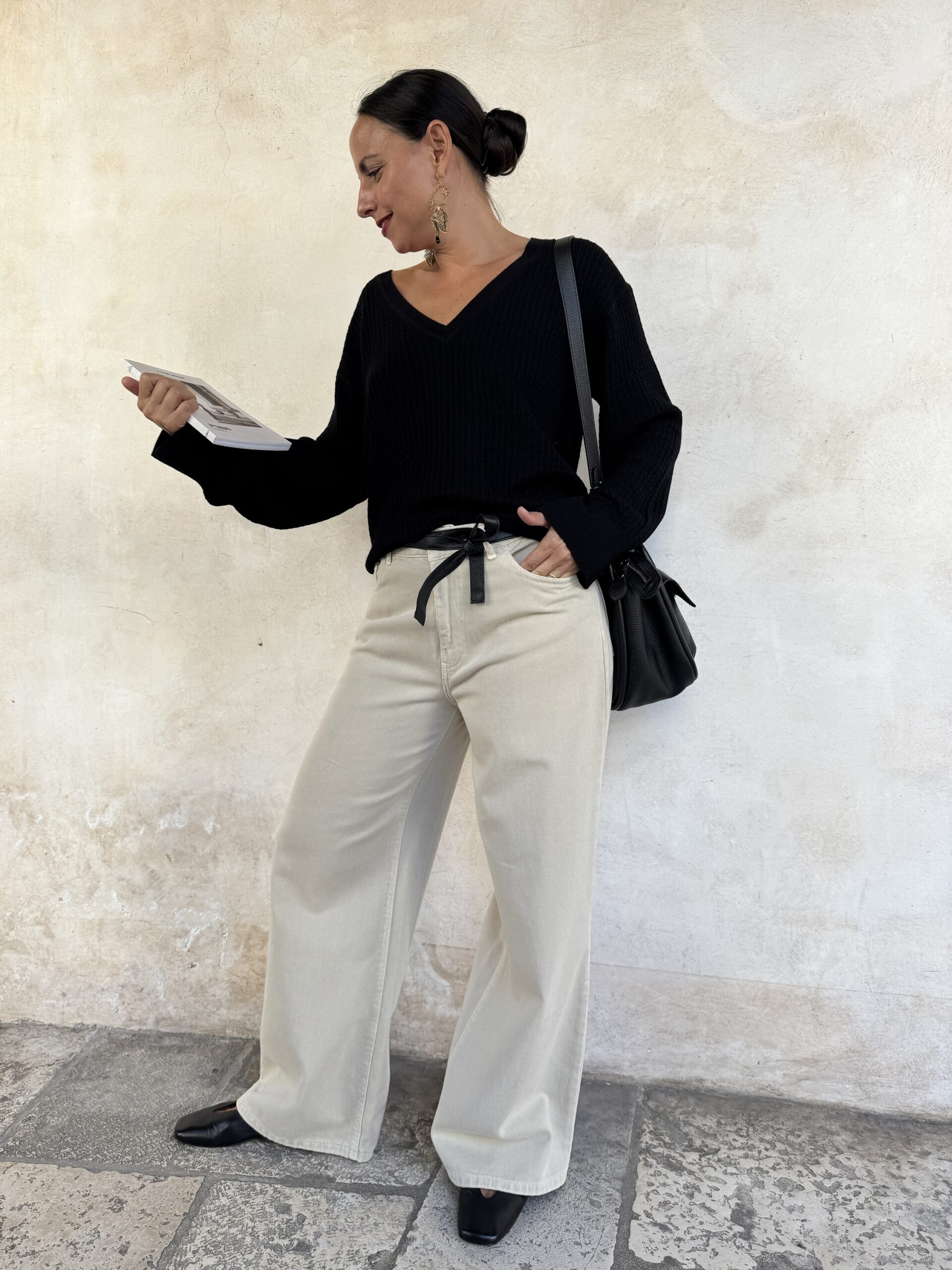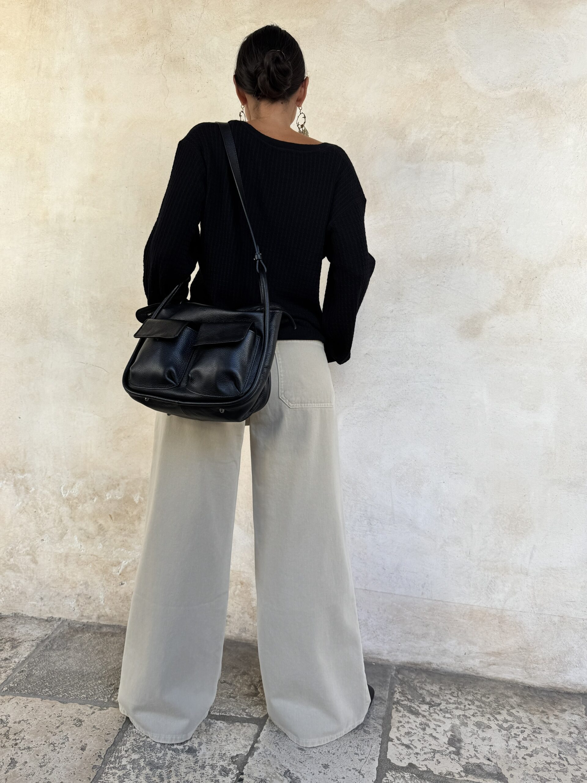 – Maglia dalla linea morbida e vestibilità abbondante.